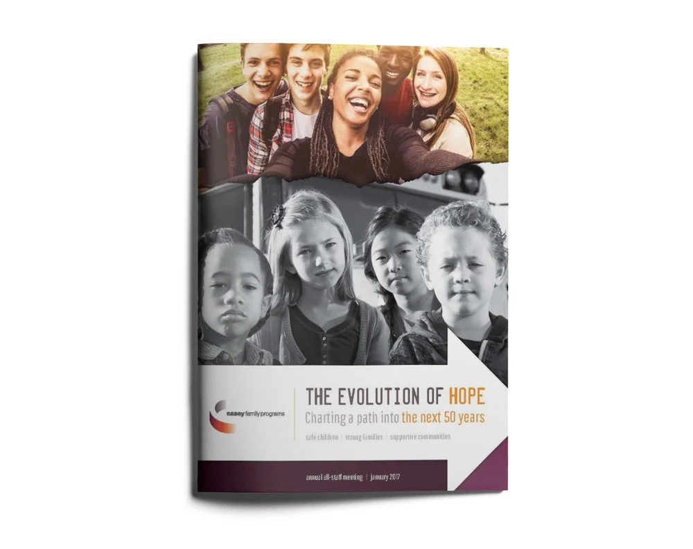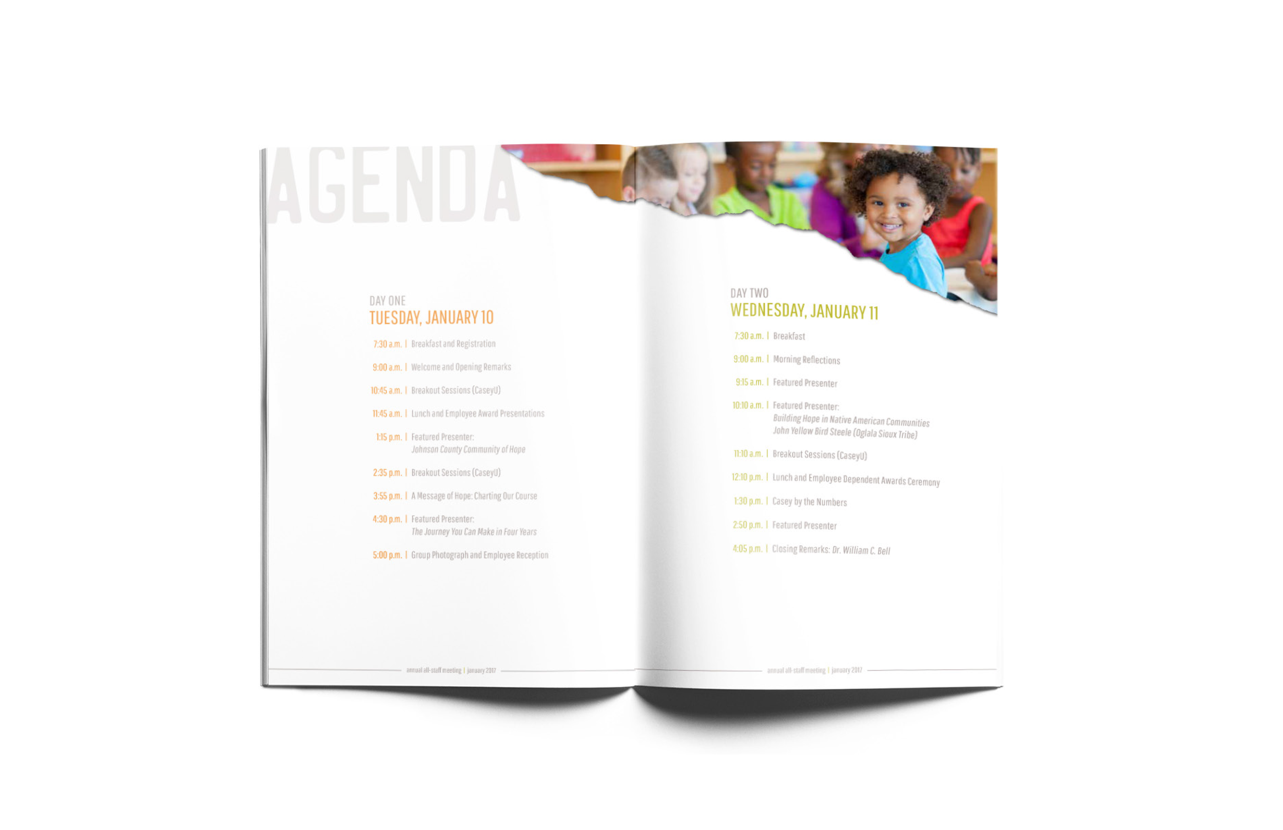 Print and visual design for various projects, including print materials for their annual all-staff meeting and Excellence for Children Awards banquet.
